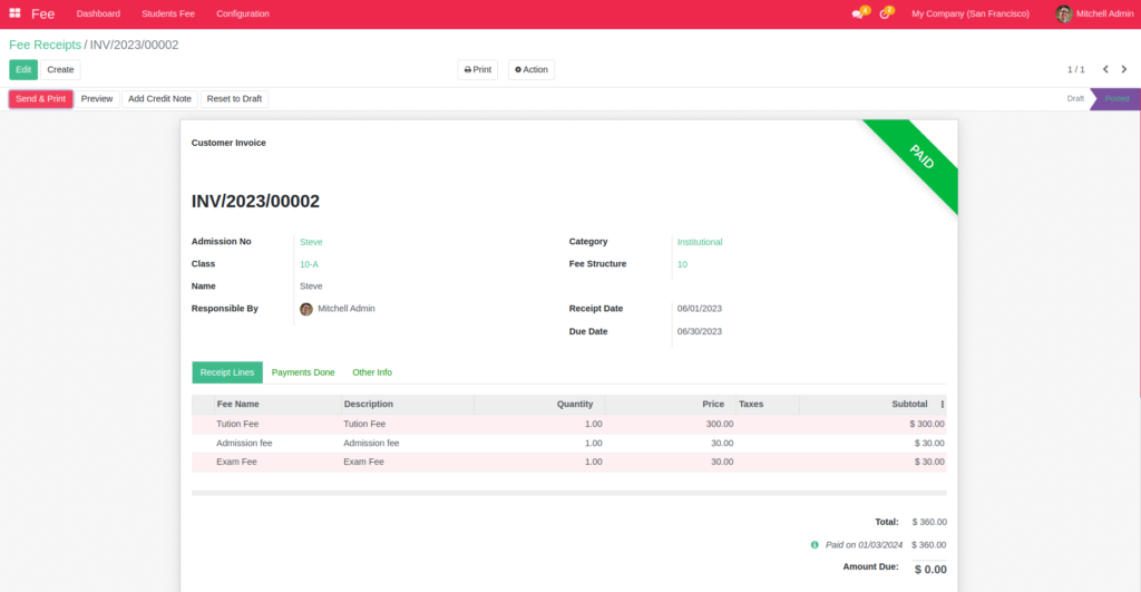 Odoo Education Institution Management