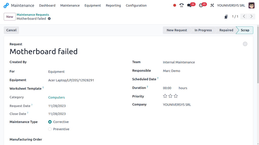 - Generate maintenance request